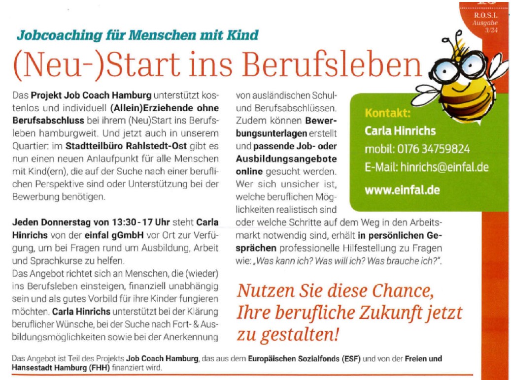 Seit diesem Jahr berät das Team von Job Coach Hamburg auch direkt in Rahlstedt-Ost vor Ort.